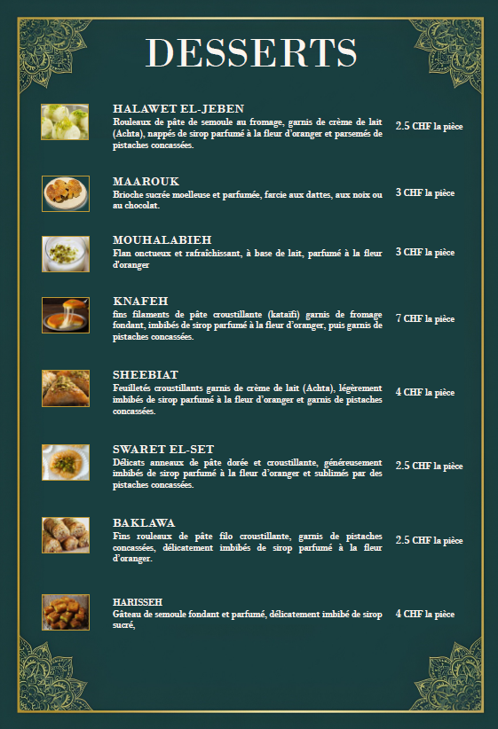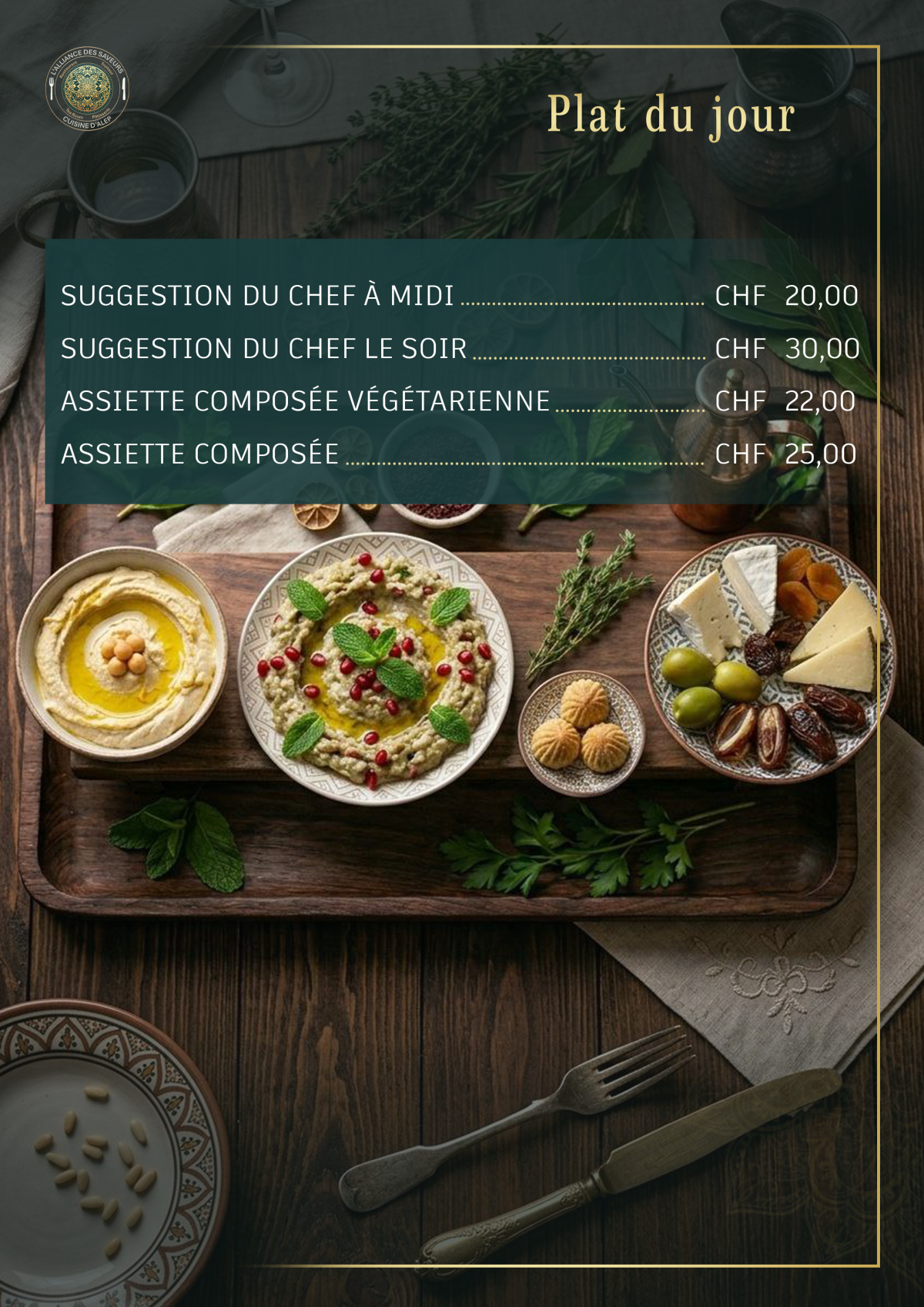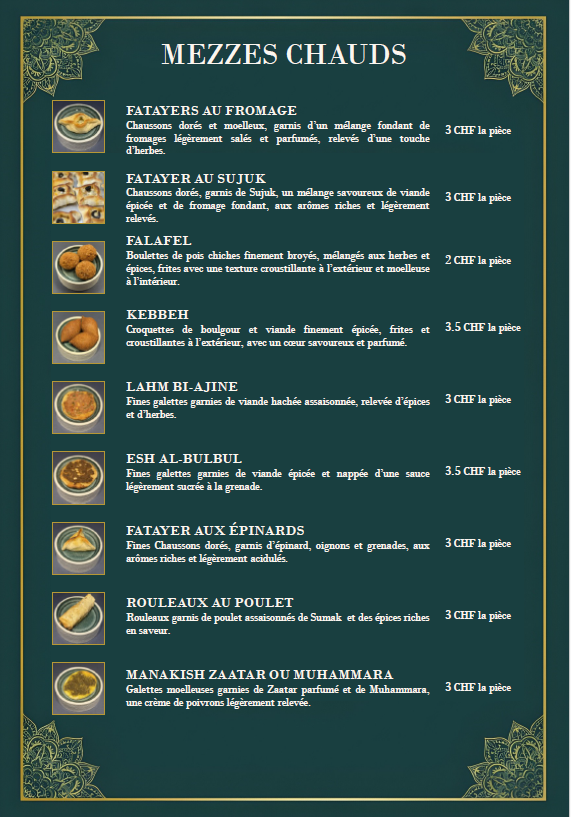 En plus de nos plats composés végétariens ou à base de viande, L'alliance des Saveurs vous propose chaque jour un plat typique syrien